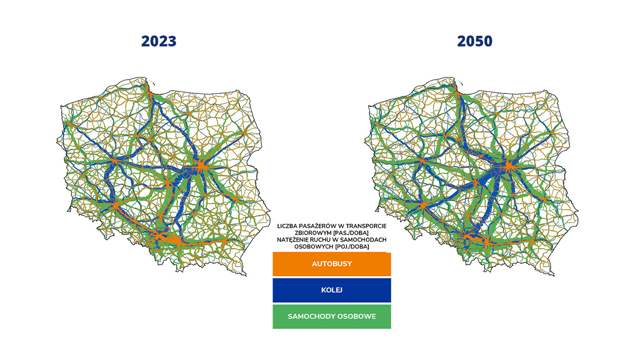 Z uwagi na multimodalny charakter modelu możliwe są obserwacje zmian, które zachodzą w preferencjach wyboru środka transportu w wyniku m.in. zmian w infrastrukturze oraz popycie w kolejnych badanych horyzontach czasowych.